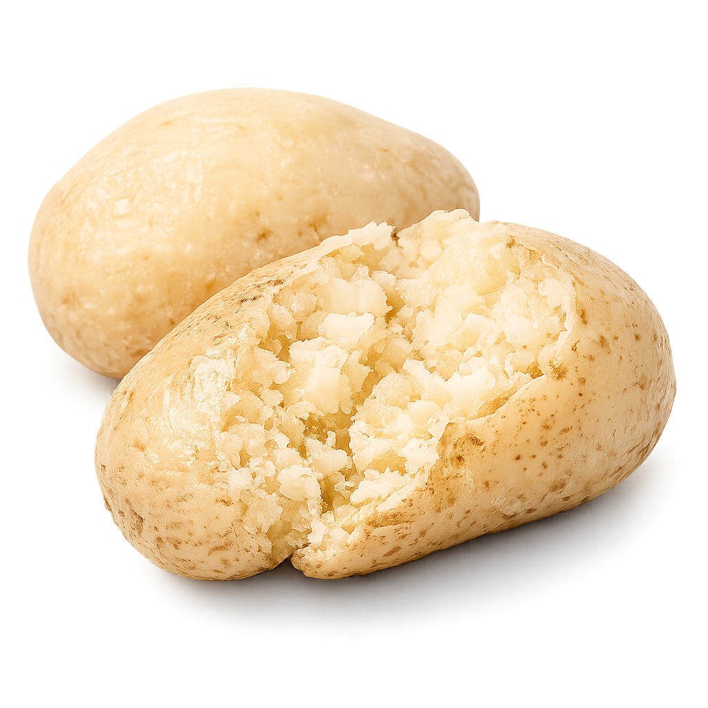 A microwaved peeled potato with starch, potassium, vitamin C, vitamin B6, niacin, and low fat