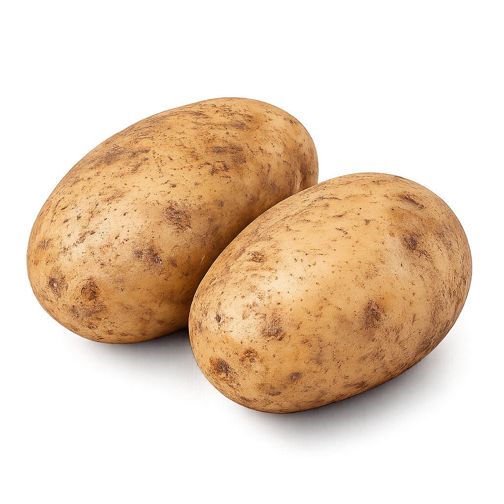 A raw skin-on potato with starch, potassium, vitamin C, vitamin B6, niacin, iron, and high fiber