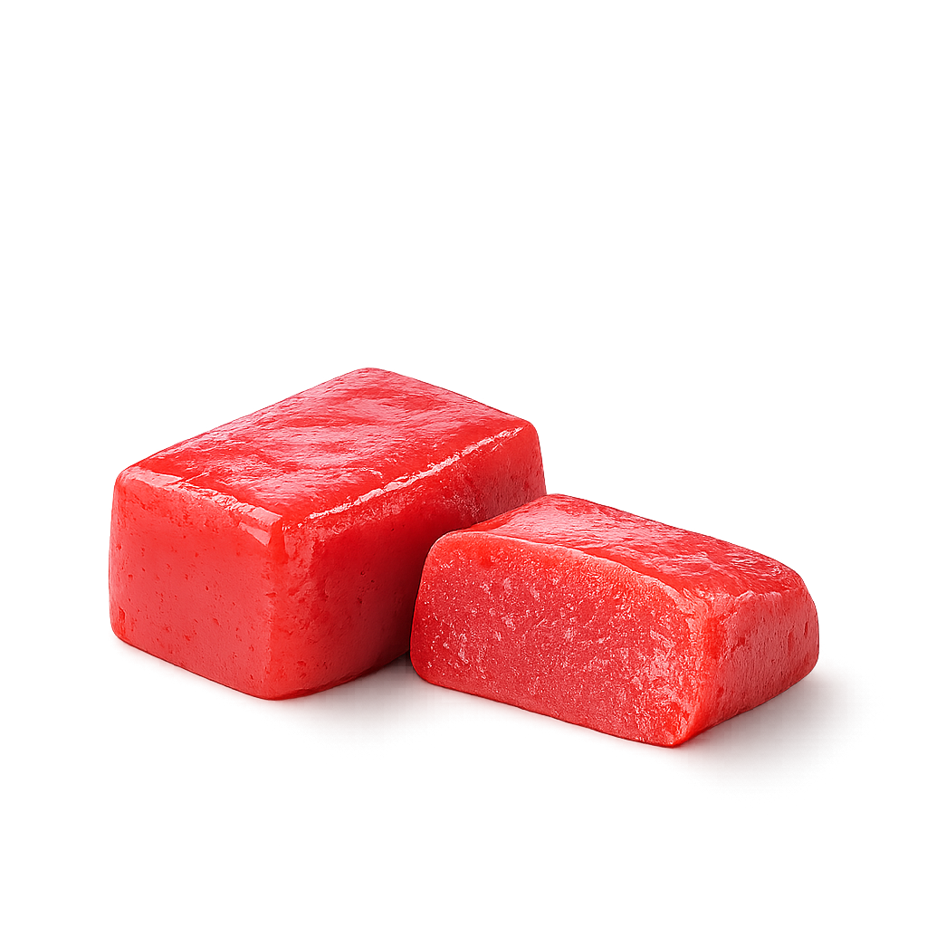 A red konjac gel colored with ferric oxide, very low calorie and high in glucomannan fiber