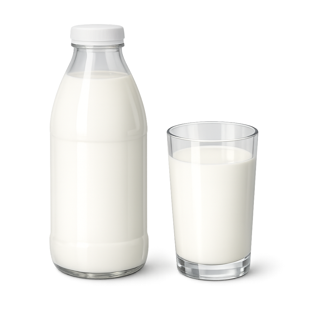 Standardized bovine milk containing at least 3.0% milk fat, serving as a significant source of calcium and phosphorus.