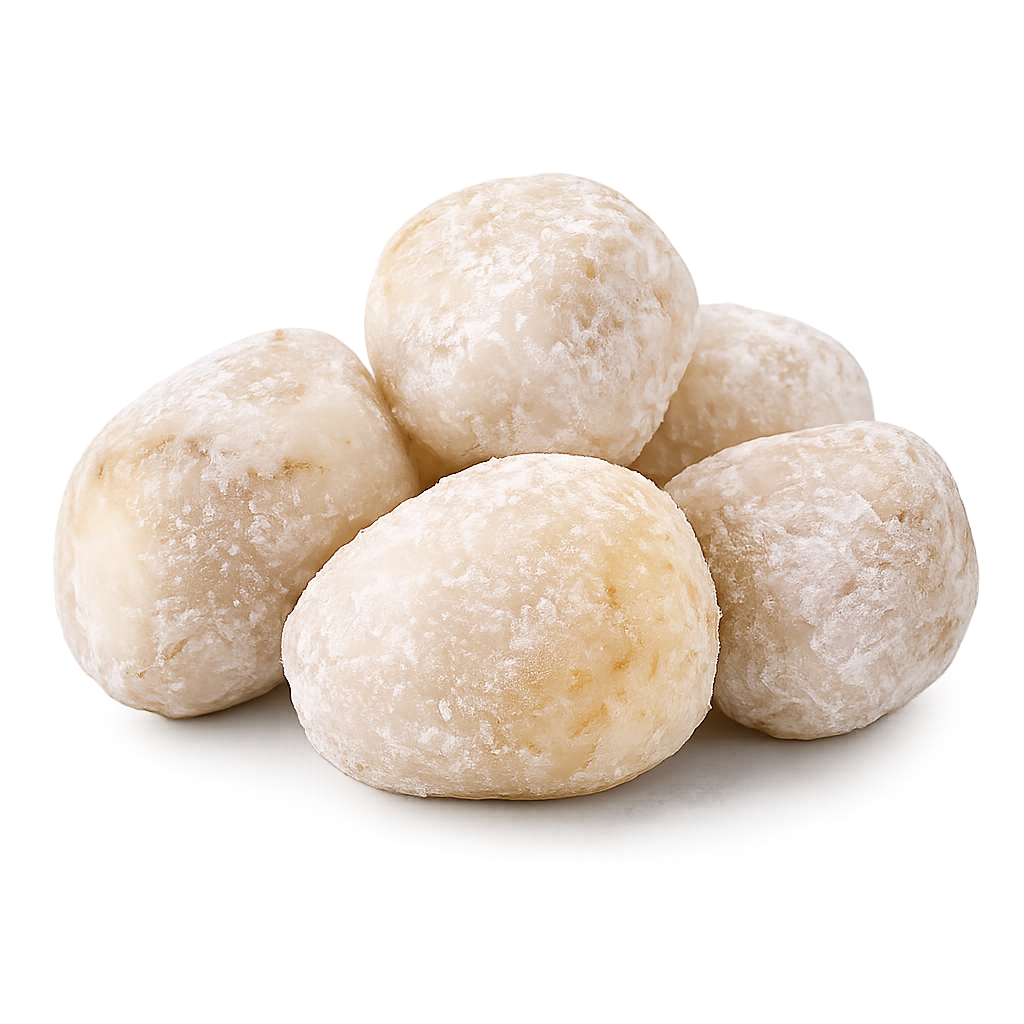A frozen blanched taro corm with preserved starch, fiber, and moderate potassium