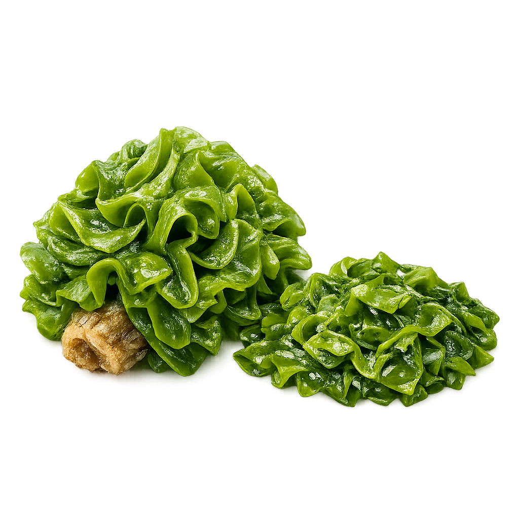 The nutrient-dense sporophyll of wakame seaweed, rich in soluble fiber (fucoidan) and minerals that support gut health and metabolic stability.