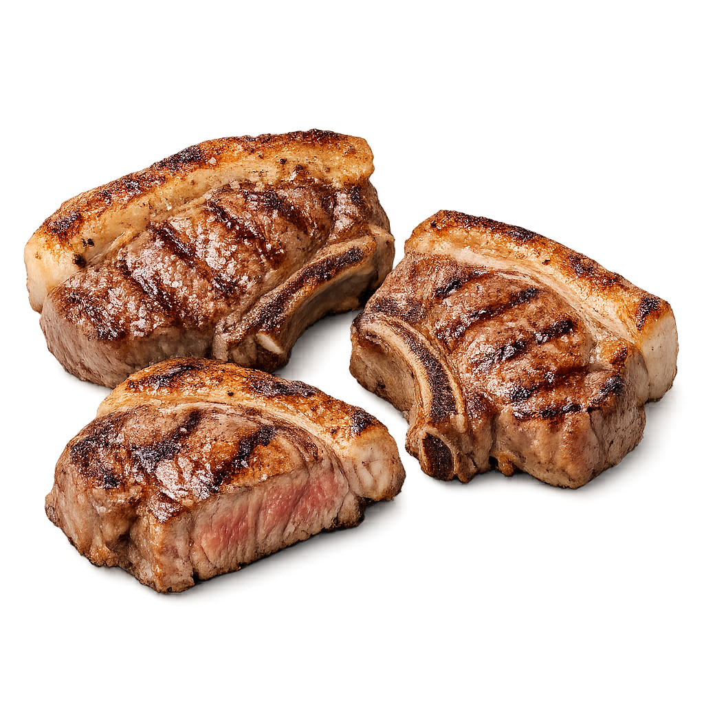 A nutrient-dense red meat high in L-carnitine, zinc, and vitamin B12, prepared with fat attached for enhanced flavor and satiety.